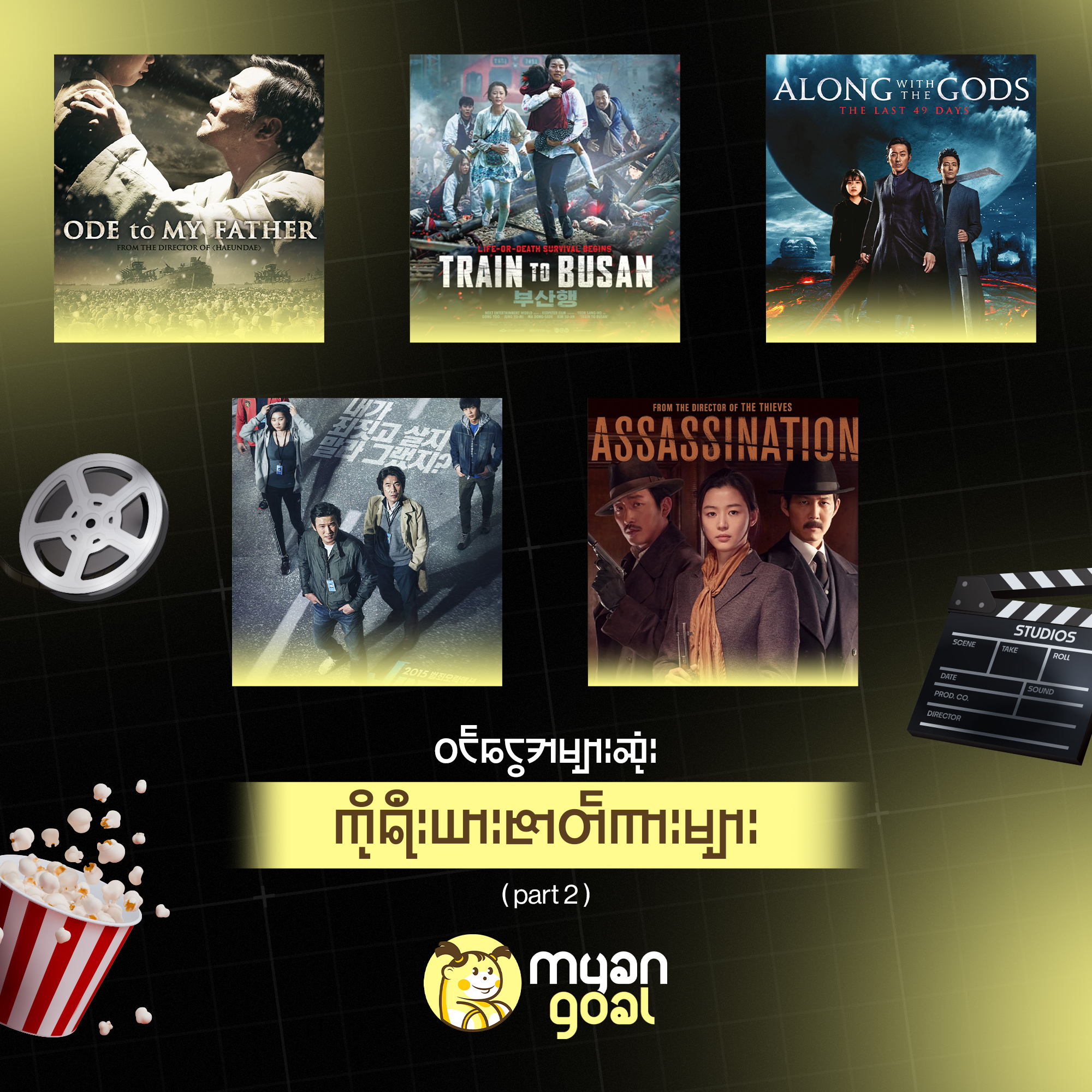 ကိုရီးယားရုပ်ရှင်တွေဆိုတာလဲ ကမ္ဘာ့ရုပ်ရှင်လောကမှာ သွားရှုပ်လို့မရတဲ့အထဲ ပါပါတယ်။ အော်စကာရရှိဖူးတဲ့ ဇာတ်ကားတွေ ရှိသလို Box Office ရုံဝင်ငွေ သန်းနဲ့ချီ ရရှိအောင်မြင်တဲ့ ရုပ်ရှင်တွေ ရှိပါတယ်။ ဒီနေ့မှာတော့ ရုပ်ရှင်ချစ်သူတွေအတွက် နောက်ထပ် Box Office ရုံဝင်ငွေအများဆုံး ကိုရီးယားဇာတ်ကား 5 ကားကို ထပ်မံ ဖော်ပြပေးလိုက်ပါတယ်။