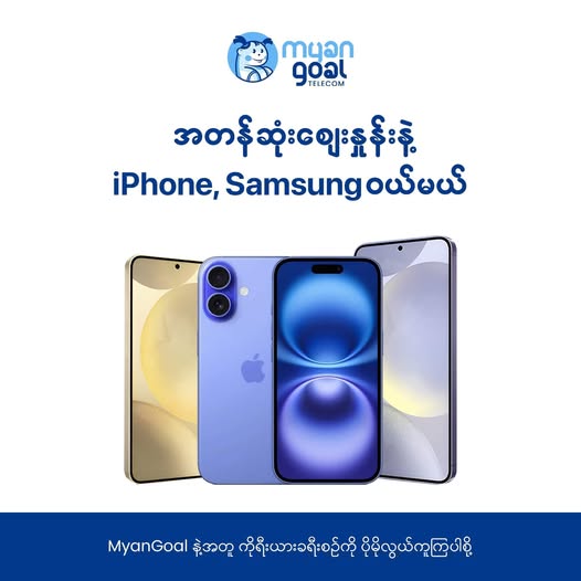 အတန်ဆုံးစျေးနှုန်းနဲ့ iPhone, Samsung များကို MyanGoal မှာ ဝယ်ယူနိုင်ပါပြီ !!