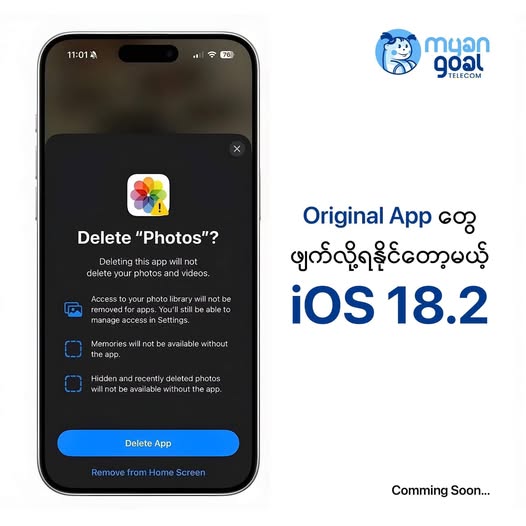 အဲ့တာကတော့ iOS 18.2 မှာ EU Region တွေအားလုံးမှာ Original App တွေဖြစ်တဲ့ App Store, Photos App, Camera App, Messages App, Safari တို့ကို ဖျက်လို့ရနိုင်မှာဖြစ်ပါတယ်။
