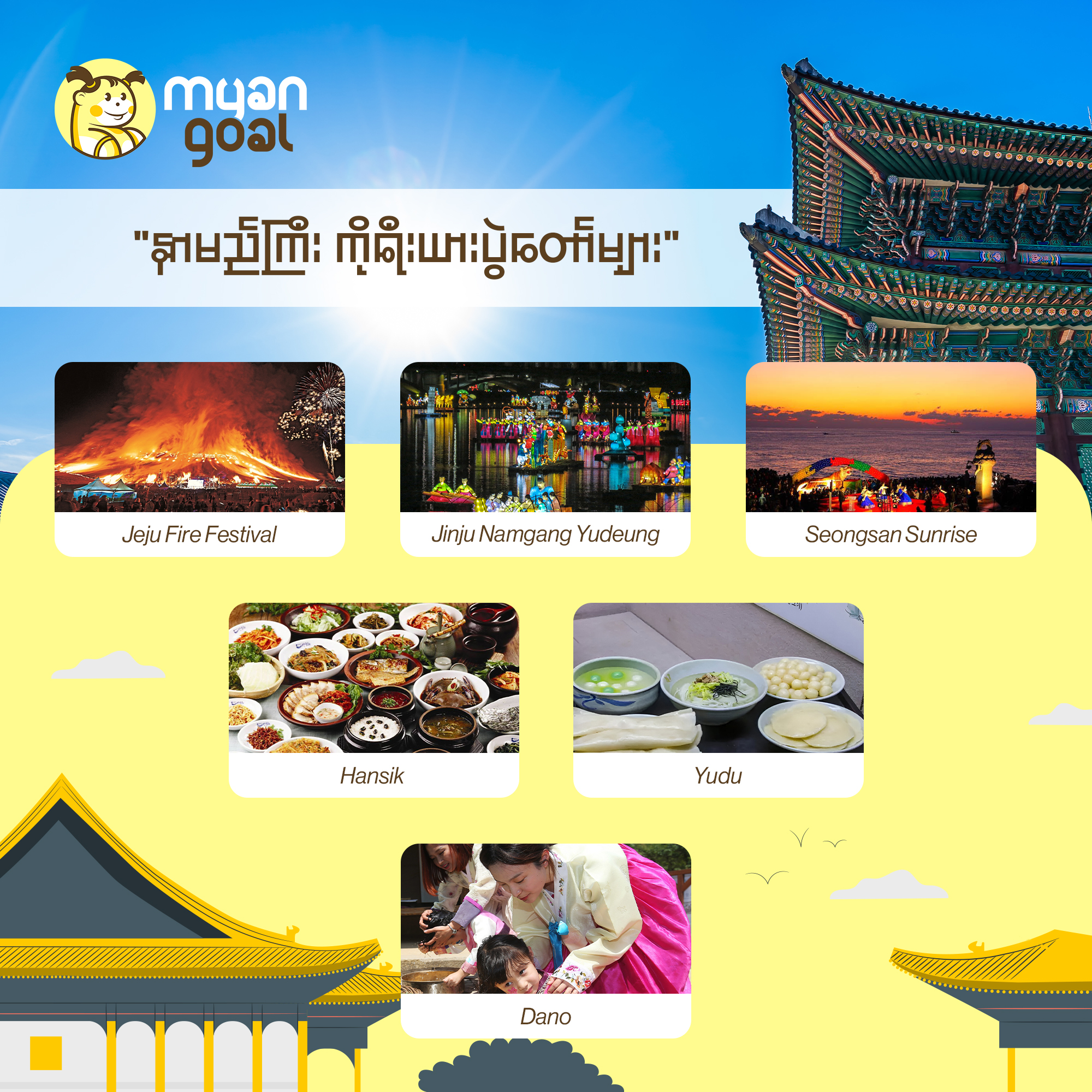 ပွဲဆိုတာနဲ့ စိတ်ဝင်စားကြတဲ့သူတွေ ရှိကြလား ? ဒီနေ့မှာတော့ ကိုရီးယားနိုင်ငံမှာ ဘယ်လို နာမည်ကြီးပွဲတော်တွေရှိလဲ ? အဲ့ပွဲတော်တွေက ဘယ်လိုပွဲမျိုးလဲ ? အဲ့ဒါတွေသိချင်ရင်တော့ အခုပြောပြမယ့်ဟာကို ဆက်ပြီးဖတ်ကြည့်ကြည့်လိုက်ပါ။ 👇👇👇